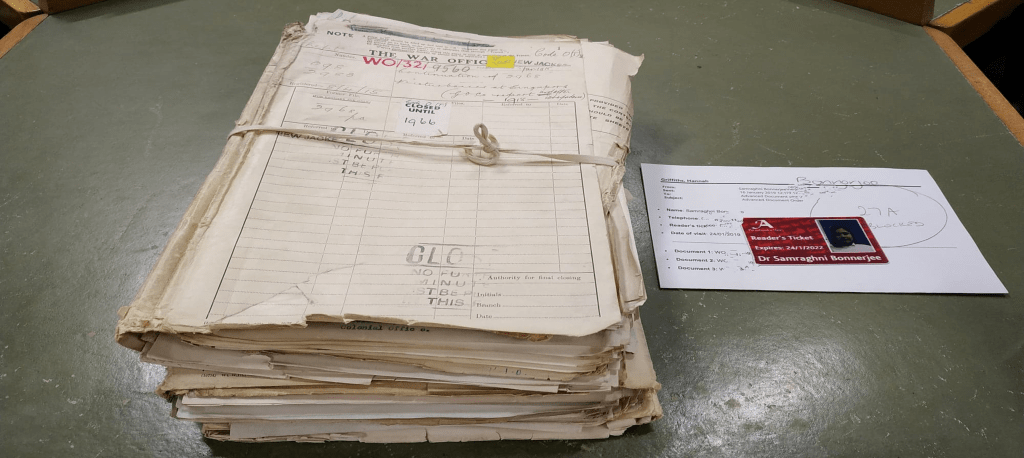 I work with literary texts that straddle that disparate juxtaposition of the “global Anglophone” and the “vernacular”. As a postcolonial scholar of war, I am interested in peripheral figures in the Forever War and in their encounters and negotiations with access to care, movement and migrations, occupying space and visibility, and shifting notions of race and belongingness. I began my career critically thinking about and working with the genre of life-writing, and although I continue to do so, particularly in my first book, over the last few years, I have also been writing on fictions in English, Bengali, Hindi and German, published between 1900 to the present, as well as on both colonial and contemporary policy documents. As a multilingual scholar, I work with texts across languages I am fluent in not only to solidify my answers to my research questions and to strengthen the corpus of war literature of the period, but also because reading and writing on texts not translated into English is my way of resisting the hegemony of the “Anglophone” academy. My primary texts are published canonical works as well as critically neglected texts that I discovered over the course of my archival research in archives at London, Leeds, Kolkata, Delhi, Paris, Berlin, Munich, Ypres, Canberra and Melbourne. Most of these archives I have worked in are colonial archives, and I think critically about the construction of a colonial archive at a recent keynote I delivered at Northumbria. In my most recent research, I have been working with policy papers—both historical and contemporary—and in my work I argue that the long legacy of imperial regulations and sensibilities in our contemporary society can be traced by critically close-reading policy documents.
